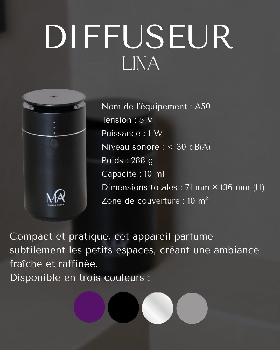Dans les petits espaces, chaque détail compte… même l’odeur. Voici le diffuseur LINA, le mini diffuseur pensé pour donner une nouvelle vie à vos lieux du quotidien.Une seule petite taille, une grande différence dans votre quotidien. Conçu pour parfumer la voiture et tous les petits espaces du quotidien.